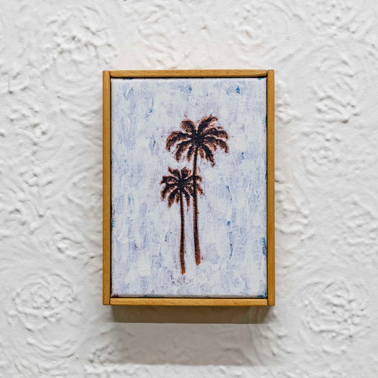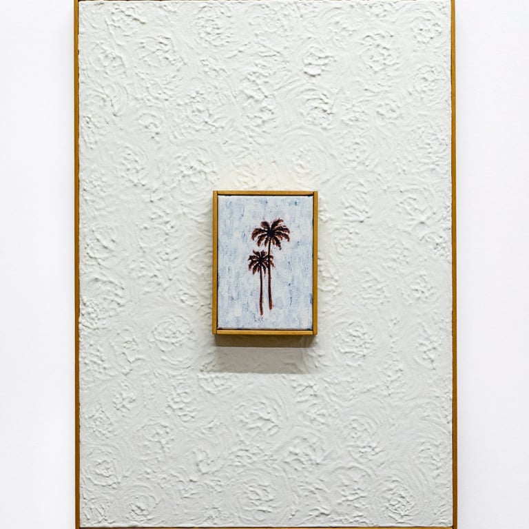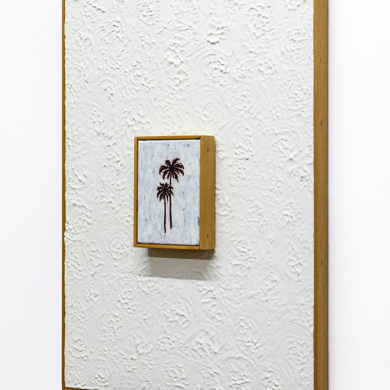 Cocomangas (2023) Acrylic and emulsion on canvas, emulsion on Artex, artist frame, 60.5 x 43 x 6.5cm