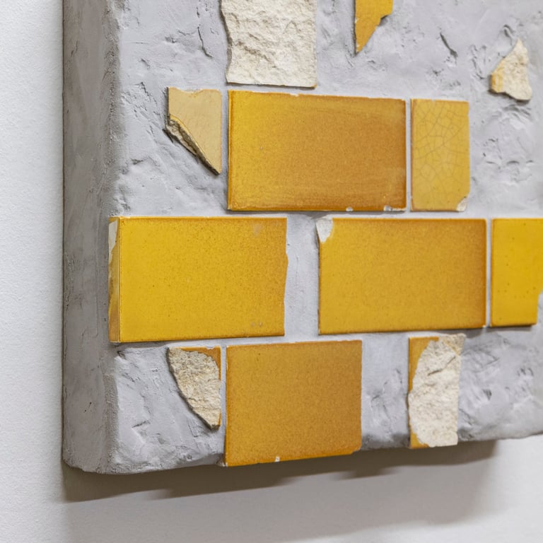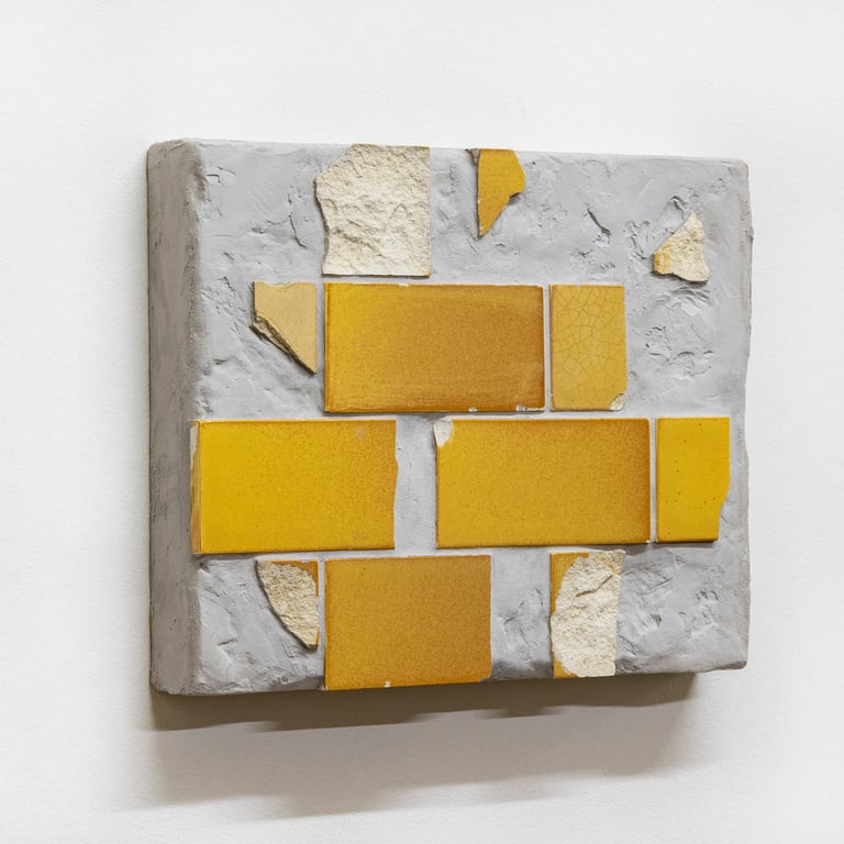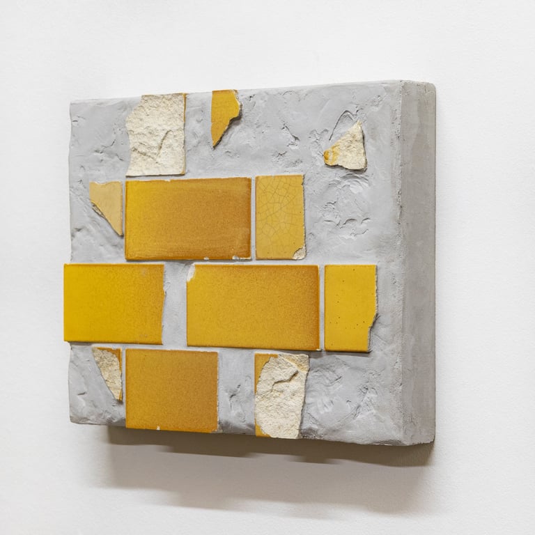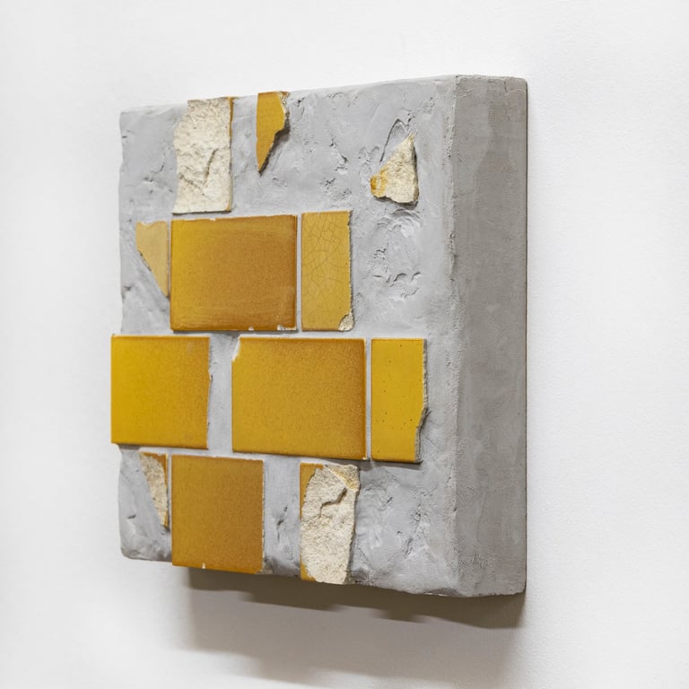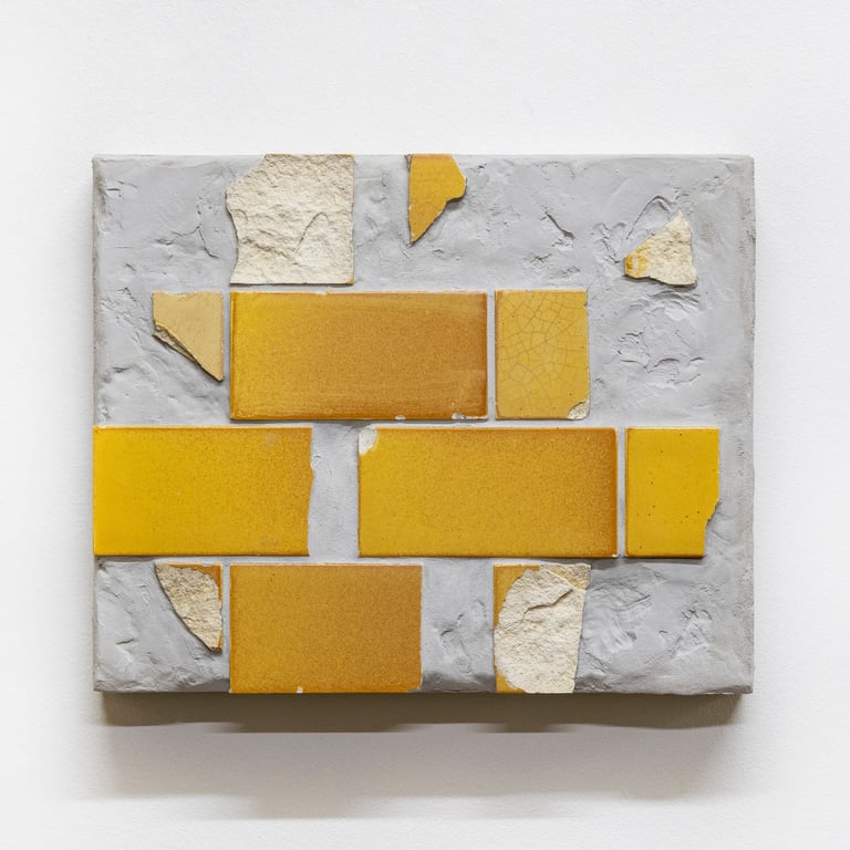 Tile Composition #3 (2025) Excavated tiles and grout on MDF and plywood, 23 x 28 x 5 cm